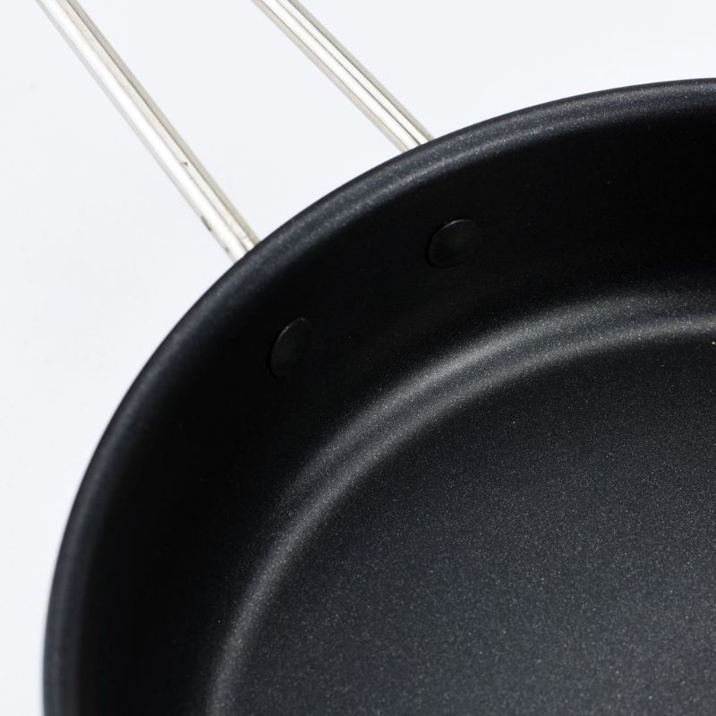 - Chảo có kết cấu đáy 3 lớp: 2 lớp inox cùng 1 lớp hợp kim nhôm ở giữa giúp nồi luôn bền chắc. Nhiệt được phân tán đều khắp đáy nồi làm cho thực phẩm chín đều và nhanh hơn, tiết kiệm thời gian đun nấu.