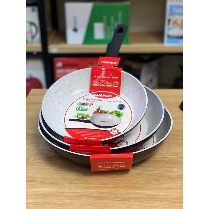 ✅ THÔNG SỐ KỸ THUẬT Chảo Chống Dính Rapido:- Thân và đáy chảo bằng nhôm đúc nguyên khối
