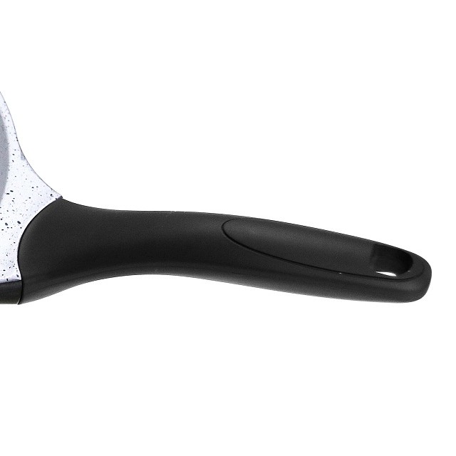 Tay cầm Silicon mềm mại, cách nhiệt, chắc chắn. Thiết kế thông minh vừa vặn, cân đối, có điểm tì tay hỗ trợ cầm nắm chảo, hất đảo thức ăn.