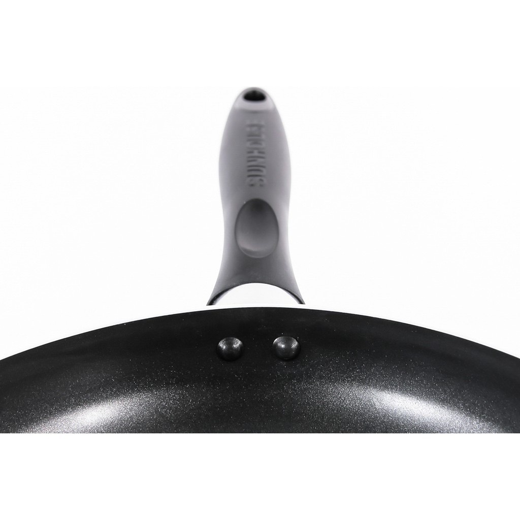 Tay cầm: Tay cầm làm từ nhựa chịu nhiệt siêu bền, chống bỏng được bắt vít chắc chắn vào thân chảo, đảm bảo an toàn trong quá trình sử dụng, nâng nhấc, di chuyển. Phía cuối tay cầm còn được thiết kế lỗ treo móc giúp treo lên gọn gàng khi không sử dụng, tạo sự thẩm mỹ cho không gian.