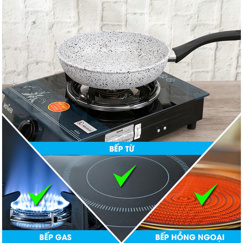 Chảo dùng tốt trên bếp gas, bếp hồng ngoại và bếp từ.