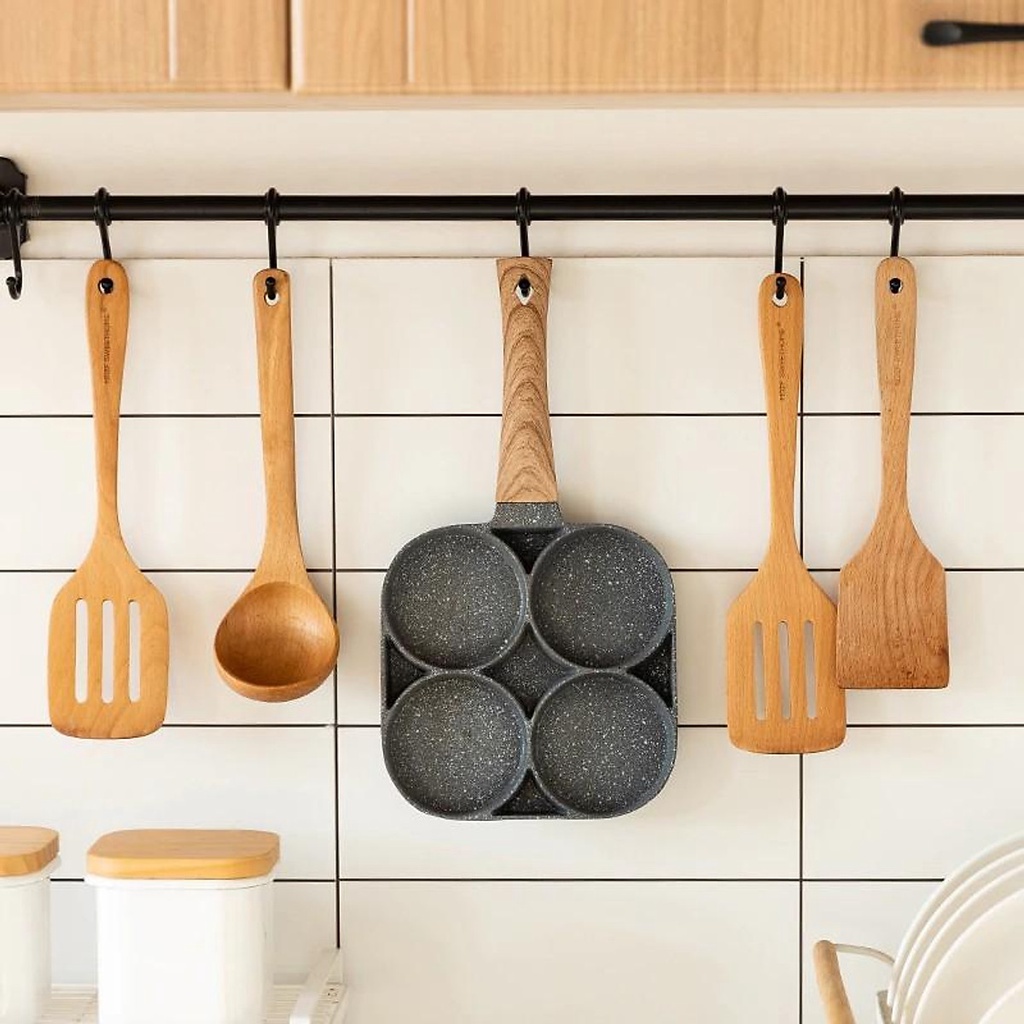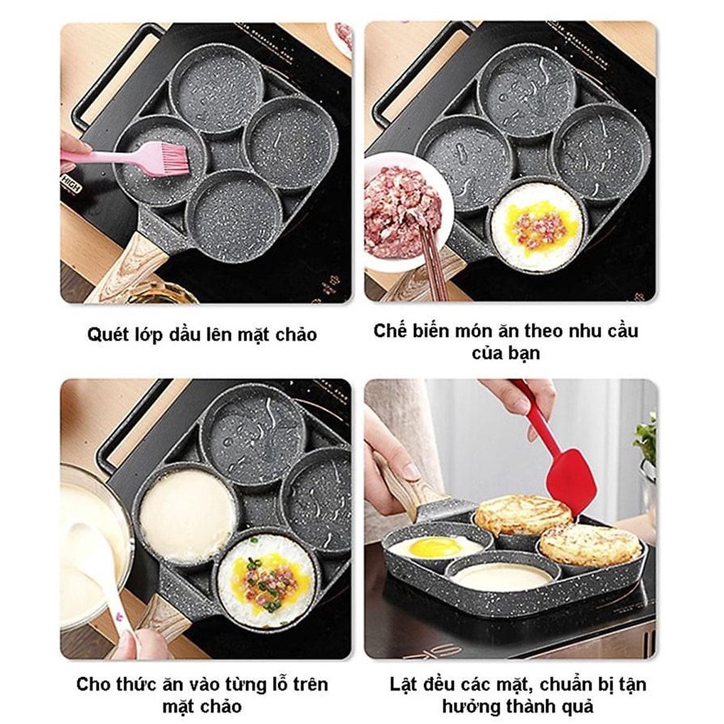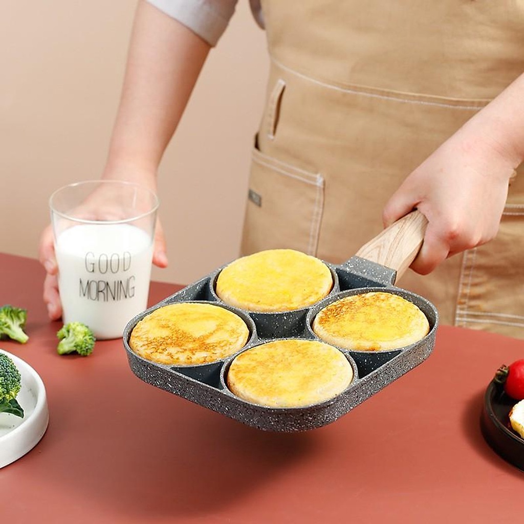 Chảo vân đá chiên trứng 4 ngăn, chảo chiên rán trứng làm bánh 4 ô chống dính tiện dụng