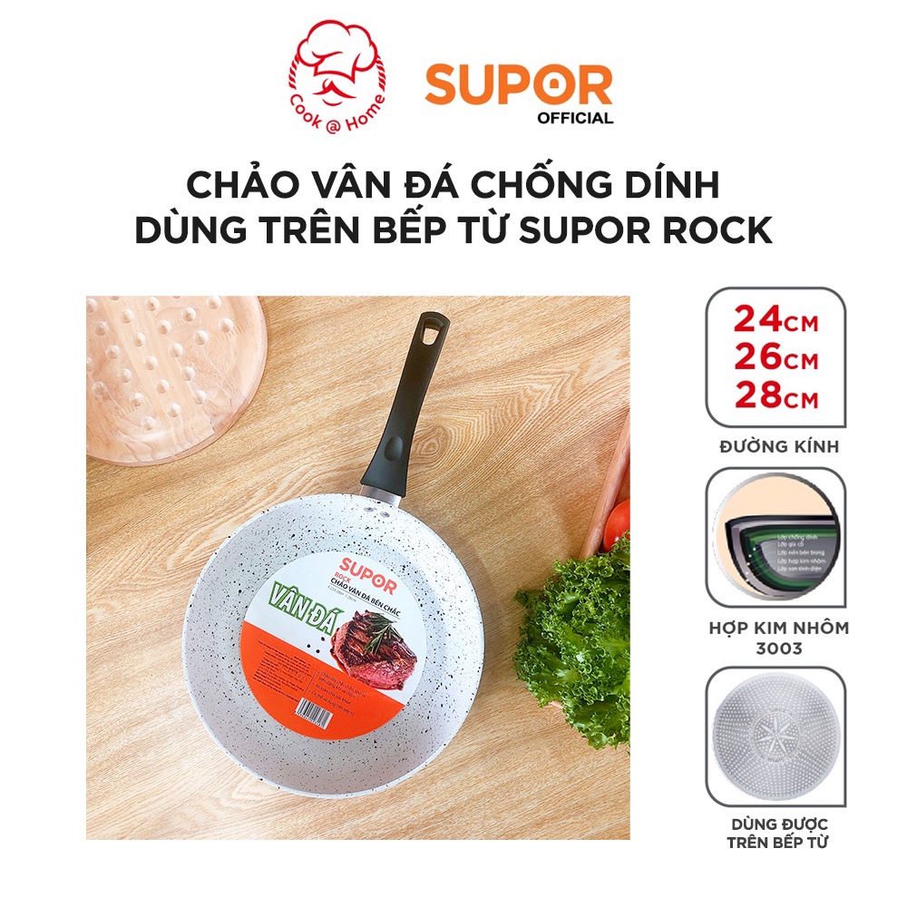 Chảo vân đá chống dính dùng trên bếp từ Supor Rock size 24, 26, 28cm F23A24IH F23A26IH F23A28IH