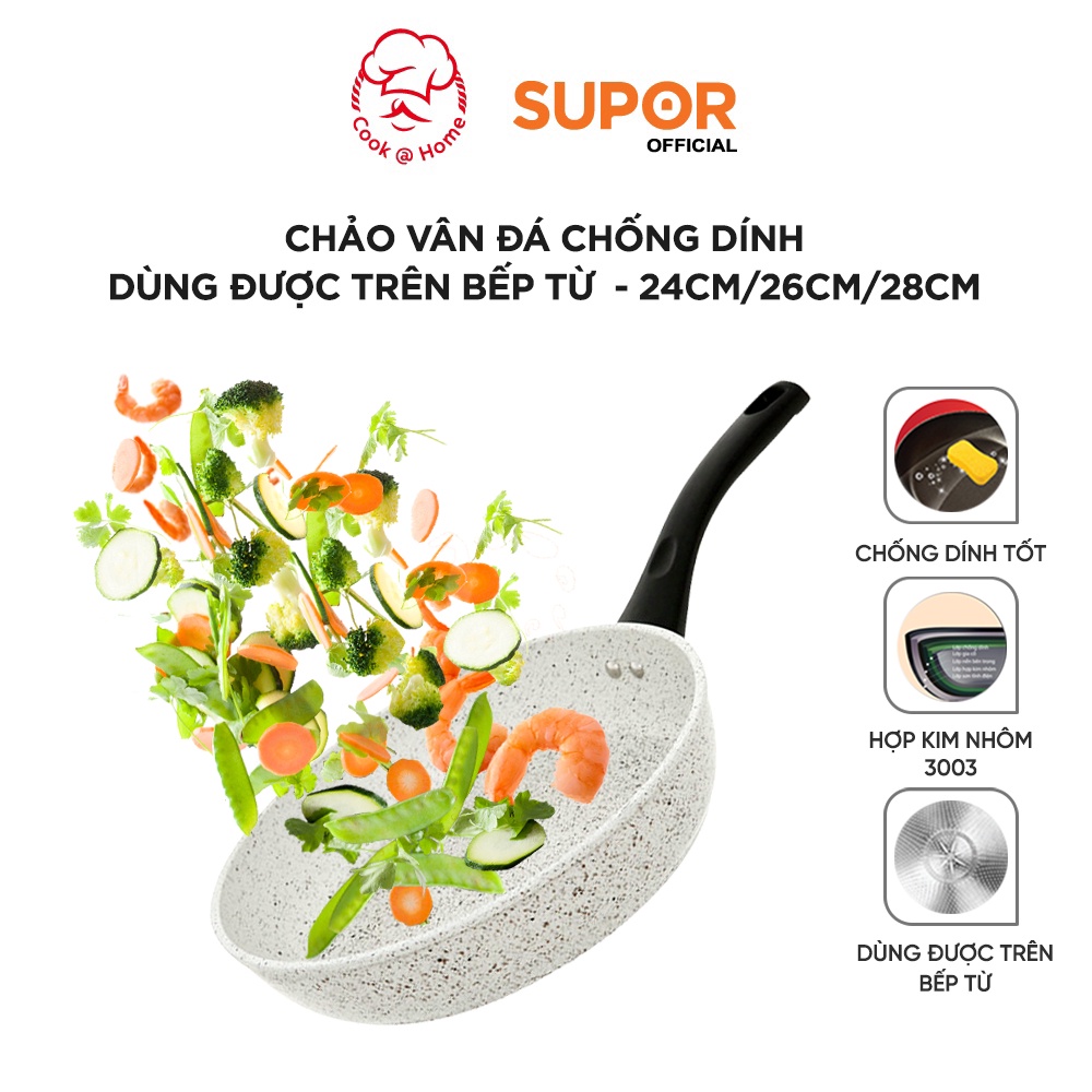 Nhà cửa & Đời sống > Dụng cụ nhà bếp > Chảo || Chảo vân đá chống dính dùng trên bếp từ Supor Rock size 24, 26, 28cm F23A24IH F23A26IH F23A28IHCòn hàng