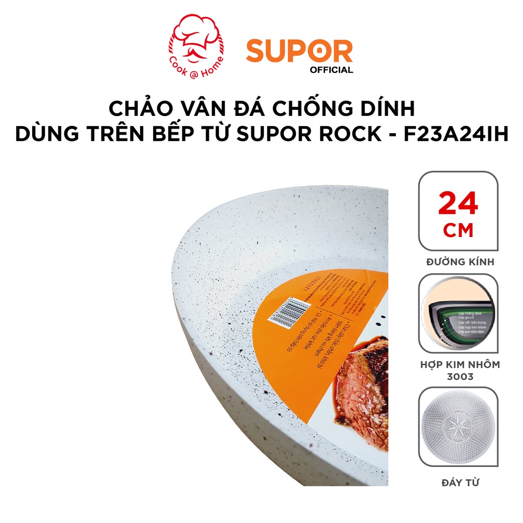 Giới thiệu Chảo vân đá chống dính dùng trên bếp từ Supor Rock size 24, 26, 28cm -F23A24IH/F23A26IH/F23A28IH