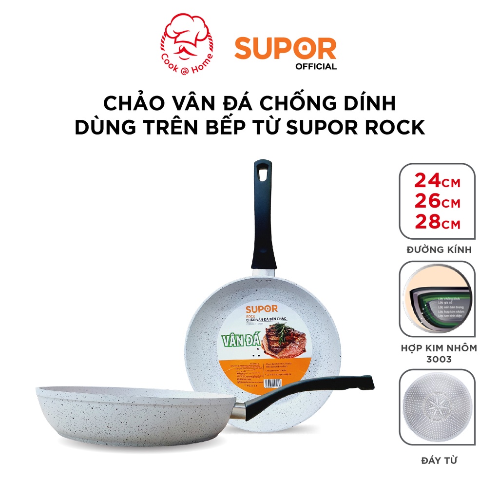 Nhà cửa & Đời sống > Dụng cụ nhà bếp > Chảo || Chảo vân đá chống dính dùng trên bếp từ Supor Rock size 24, 26, 28cm -F23A24IH/F23A26IH/F23A28IHCòn hàng