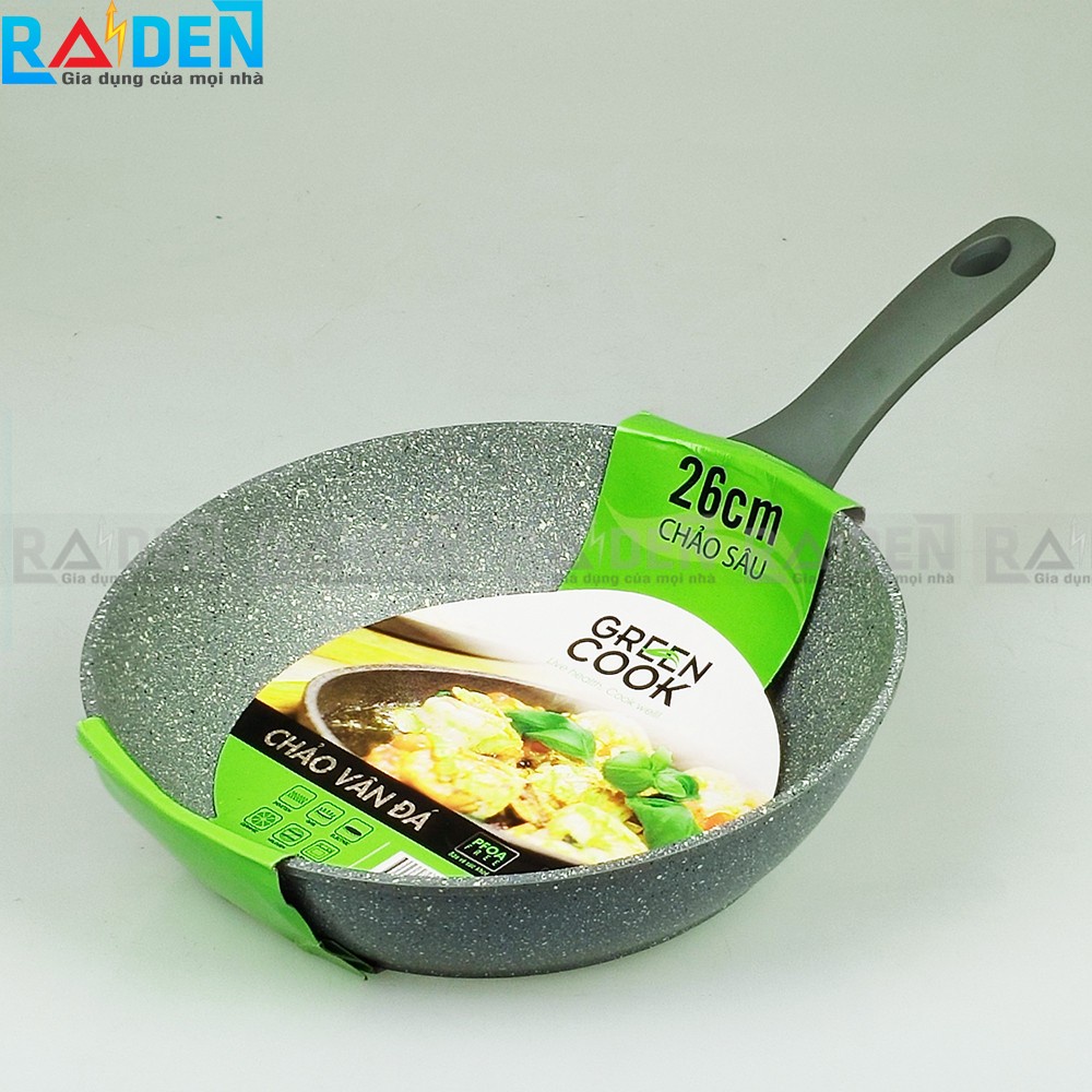 CHẢO VÂN ĐÁ ĐẤY TỪ SÂU LÒNG GREEN COOK 26CM