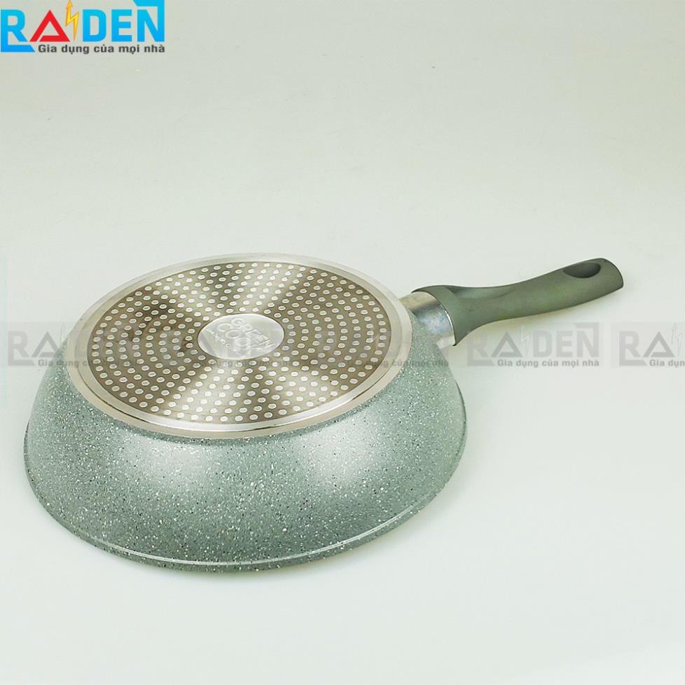 Chảo đáy từ vân đá chống dính được phủ chống dính vân đá 2 mặt trong và ngoài theo tiêu chuẩn Châu Âu hoàn toàn mới, giúp cho bề mặt khó trầy xước, an toàn cho sức khoẻ.