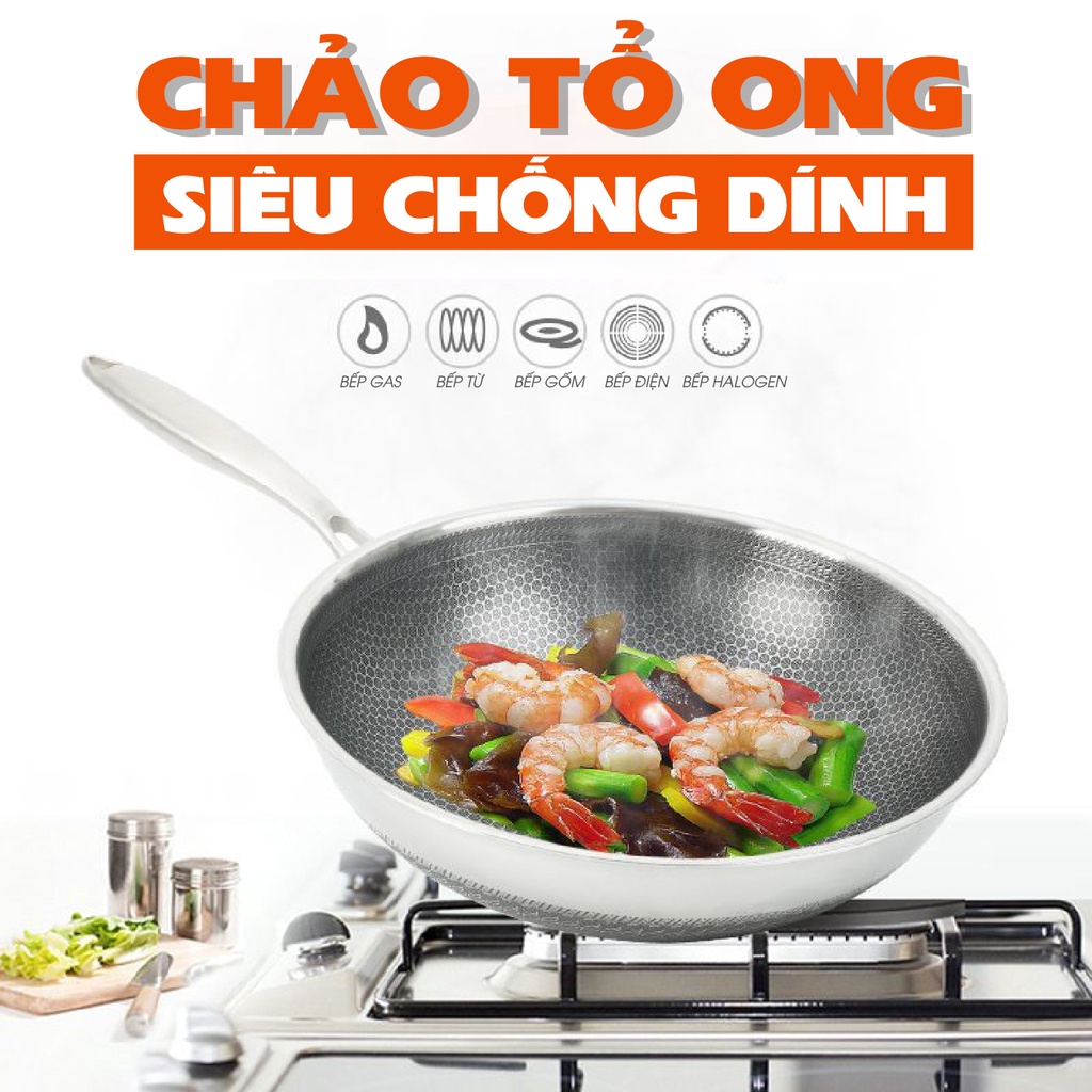 Thiết kế mặt chảo tổ ong, chống dính tự nhiên, xịn cực mà có dùng búi sắt rửa cũng ko bong trầy đâu ý.