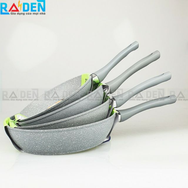 - Chảo sử dụng vân đá bao phủ cả bên trong và mặt ngoài chảo, chống trầy xước và bám bẩn cực tốt