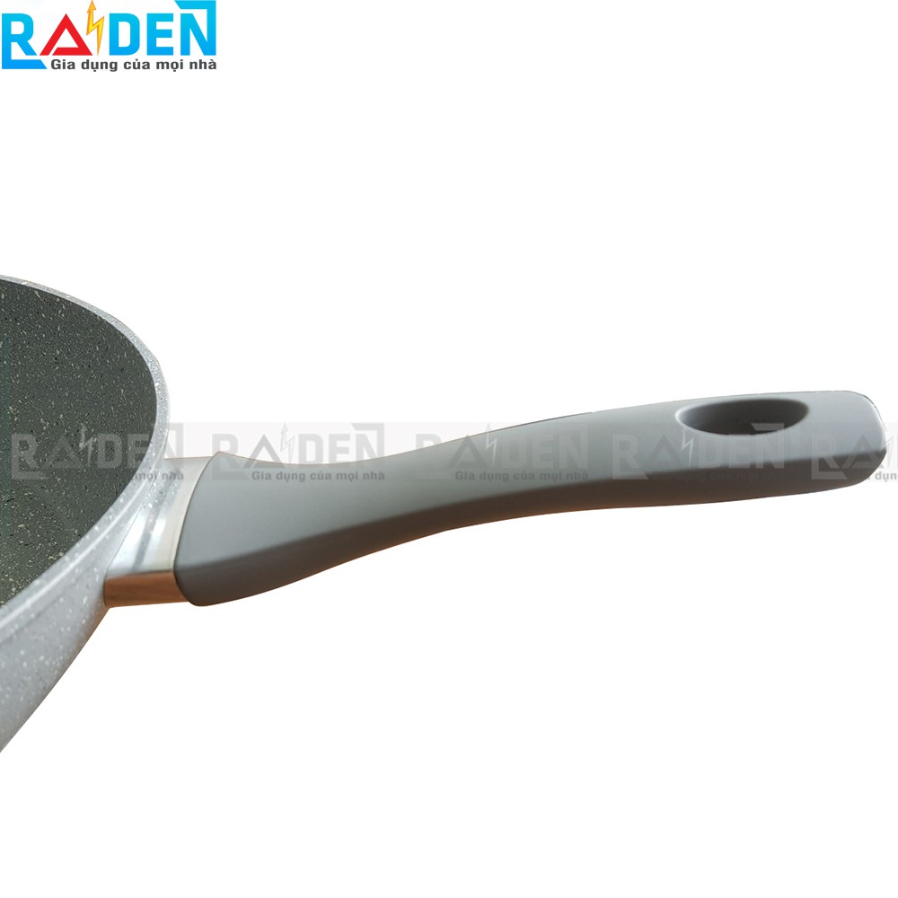 - Chảo sử dụng vân đá bao phủ cả bên trong và mặt ngoài chảo, chống trầy xước và bám bẩn cực tốt