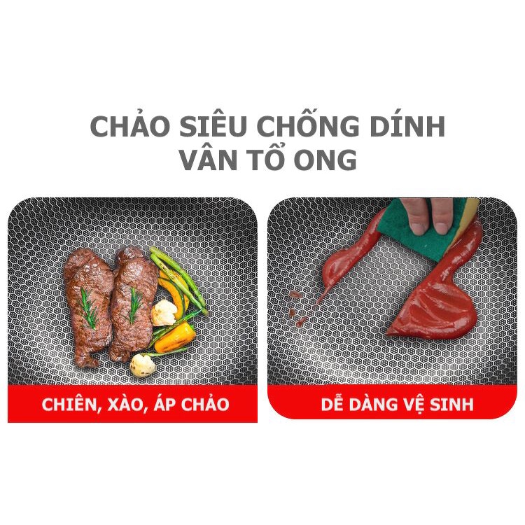 Chảo vân tổ ong chống dính cao cấp-Chảo dùng được tất cả các loại bếp - Đường kính lớn 32cm