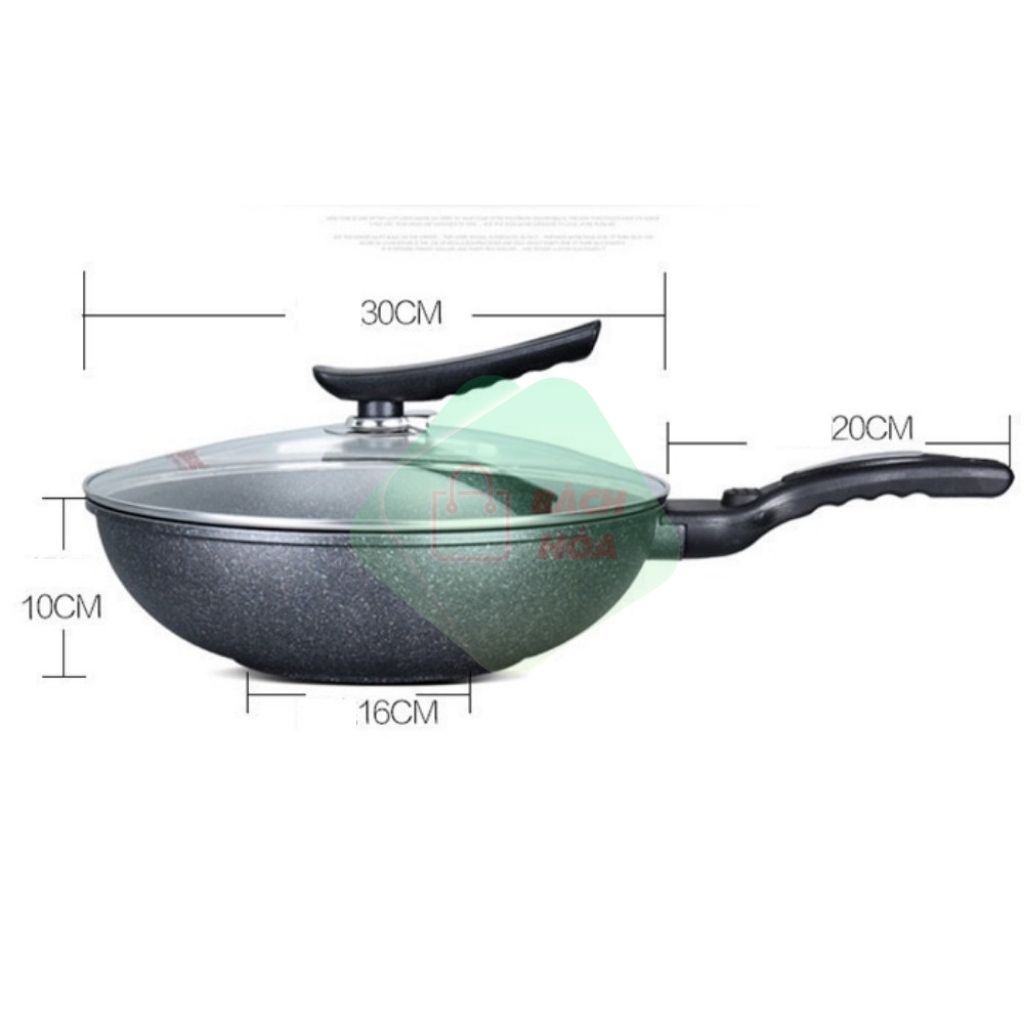 + Chảo được tráng lớp mặt đá ceramic nên đun, xào không lo bị bong tróc hay dính