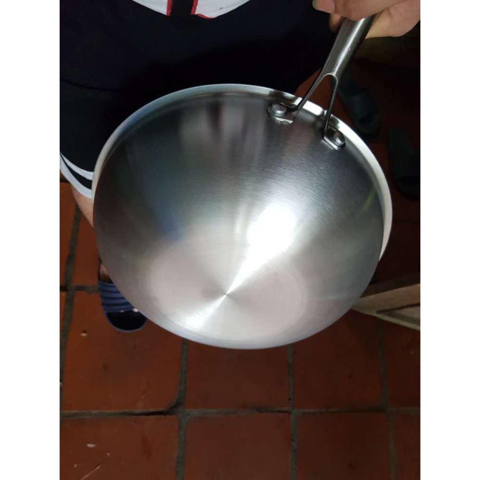 - Tay cầm bằng inox đúc rỗng, kỹ thuật đặc biệt ghép nối với thành chảo nên không nóng, nhẵn và sáng bóng nên dễ dàng rửa sạch và luôn đẹp, sang trọng.
