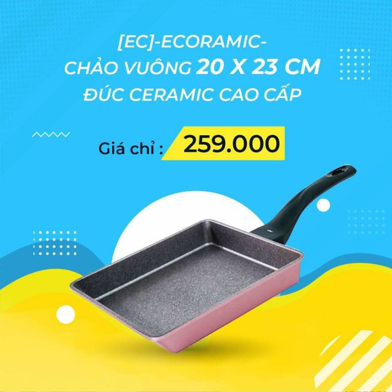 Nhà cửa & Đời sống > Dụng cụ nhà bếp > Chảo || Chảo vuông đúc Ecoramic 20*23cm cao cấpCòn hàng