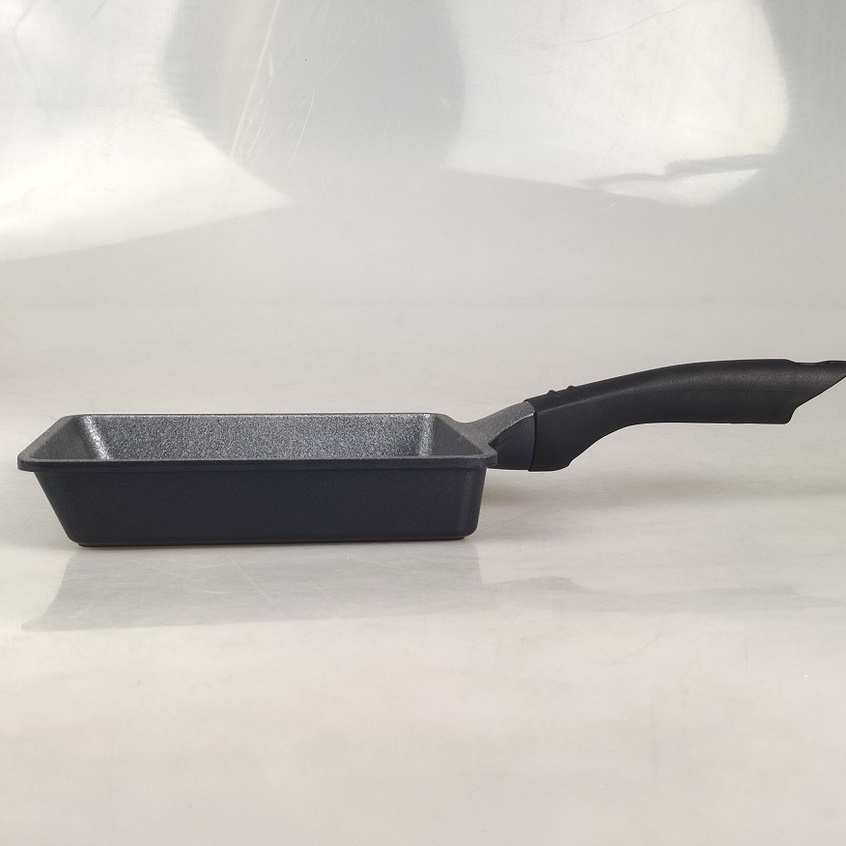 - Chảo đúc đồng nhất bằng nhôm oxy hóa cứng, độ dày thành chảo gần 5mm