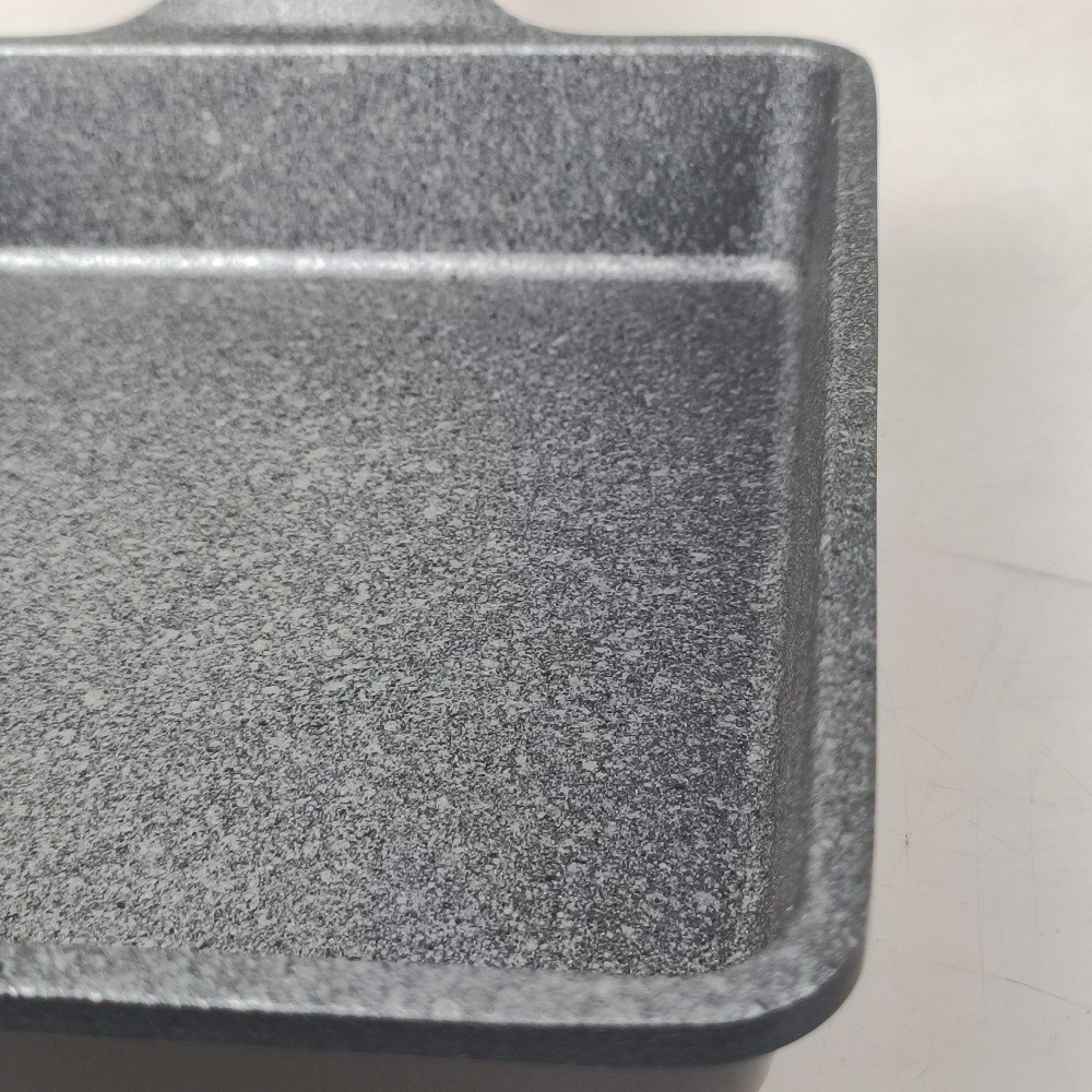 - Lớp chống dính dạng vân đá nhiều lớp có khả năng chống trầy xước rất tốt, có thể dùng cước xanh để chà rửa