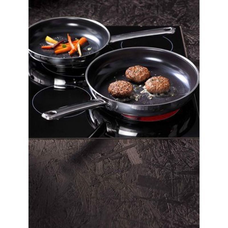 – Đường kính đáy: 1 chảo 24cm; 1chảo 28cm (rất phù hợp với vùng nấu của bếp là 18cm và 22cm).