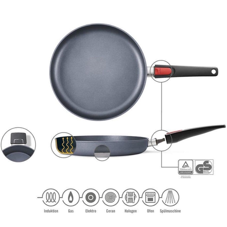 👉Chảo WOLL có khả năng chống trầy xước và nhiệt độ cao lên đến 400 độ, tay cầm có thể tháo rời để sử dụng an toàn trong lò nướng lên đến 250 độ.