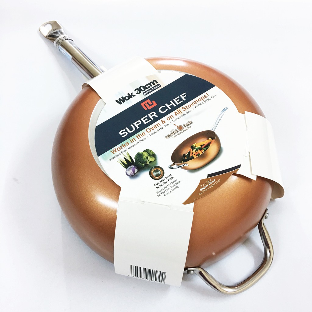 Nhà cửa & Đời sống > Dụng cụ nhà bếp > Chảo || Chảo xào chống dính Chính hãng SUPER CHEF Hợp kim tráng men đáy từ Tay cầm chống nóng 30cm SC_W1030Còn hàng