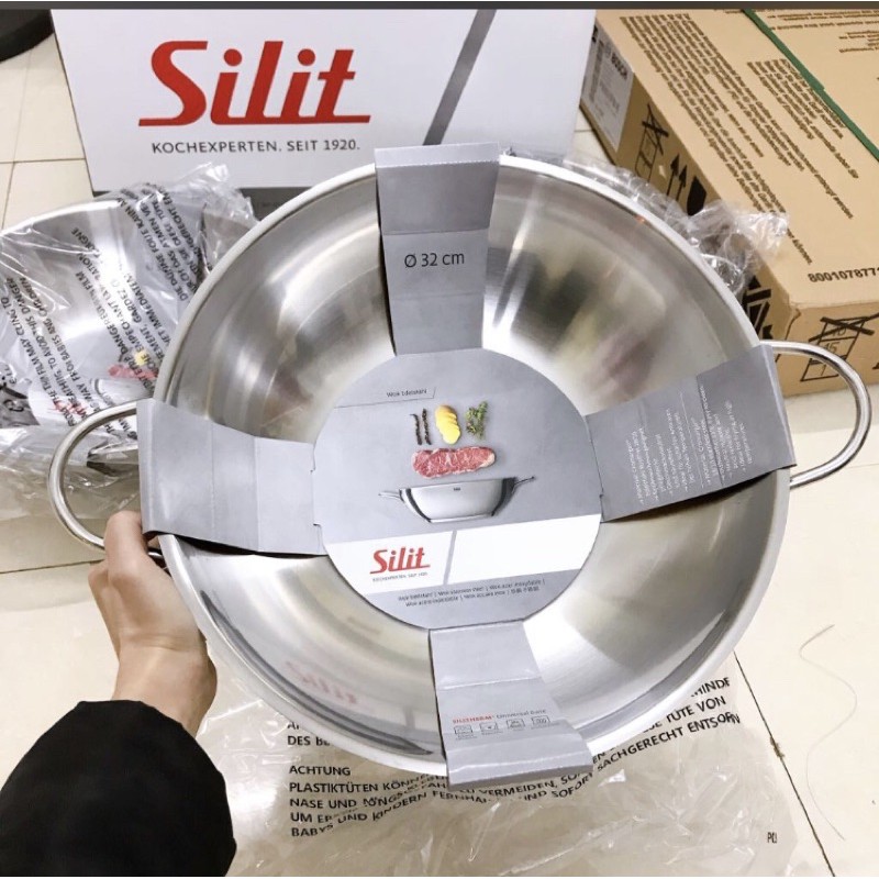 🇩🇪 CHẢO SÂU LÒNG SILIT 2HANDLES 32CM👉 Chảo sâu lòng Silit inox đường kính 32cm chất liệu thép không gỉ, độ chịu nhiệt cao, không bị cong vênh biến dạng khi đun ở nhiệt độ cao.