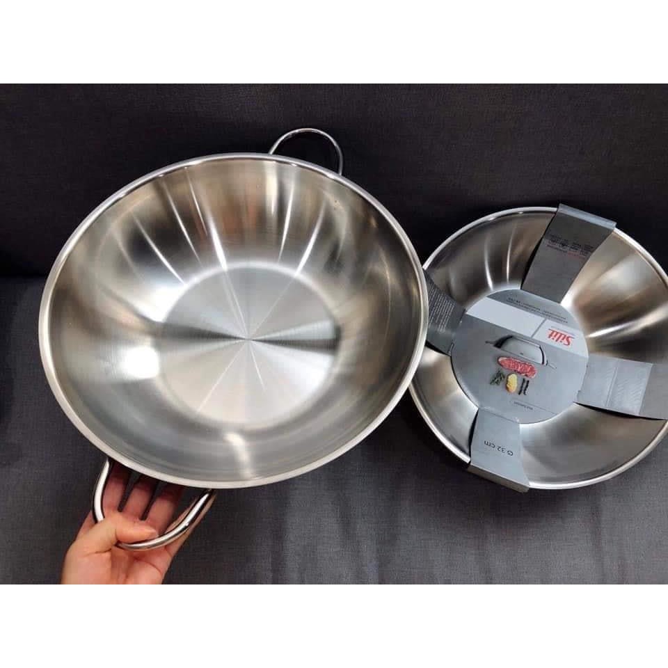 - Chảo sâu lòng Silit inox đường kính 32cm chất liệu thép không gỉ, độ chịu nhiệt cao, không bị cong vênh biến dạng khi đun ở nhiệt độ cao.