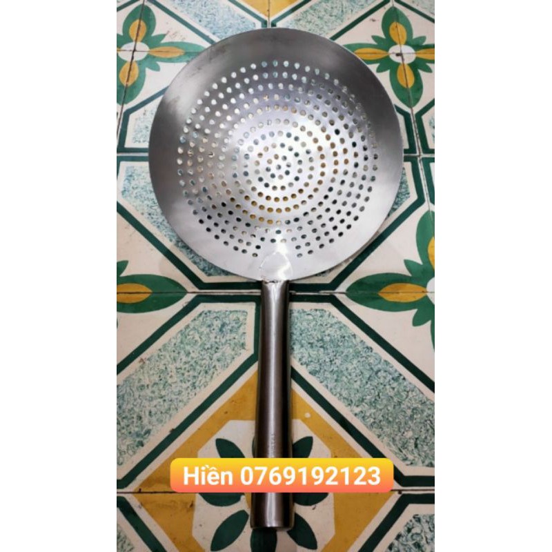 Chao xương, vớt đồ chiên luộc rán toàn bộ bằng inox, đường kính chao 28-30cm, tổng chiều dài 50cm.Sản phẩm được làm toàn bộ bằng inox nên rất bền, mối hàn chắc chắn (không giống như chao sợi rất dễ bị bung), cán bằng inox nhưng cầm không nóng 1 tẹo nào ạ.