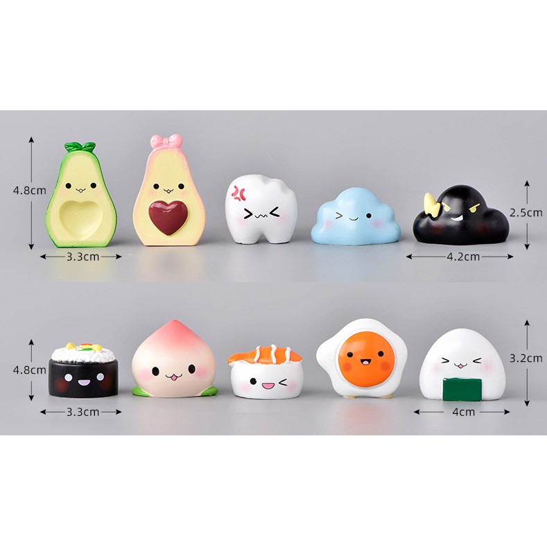 Charm búp bê cảm xúc hình quả bơ, răng sâu, cơm bento, mây sét cho các bạn trang trí tiểu cảnh, terrarium, DIY