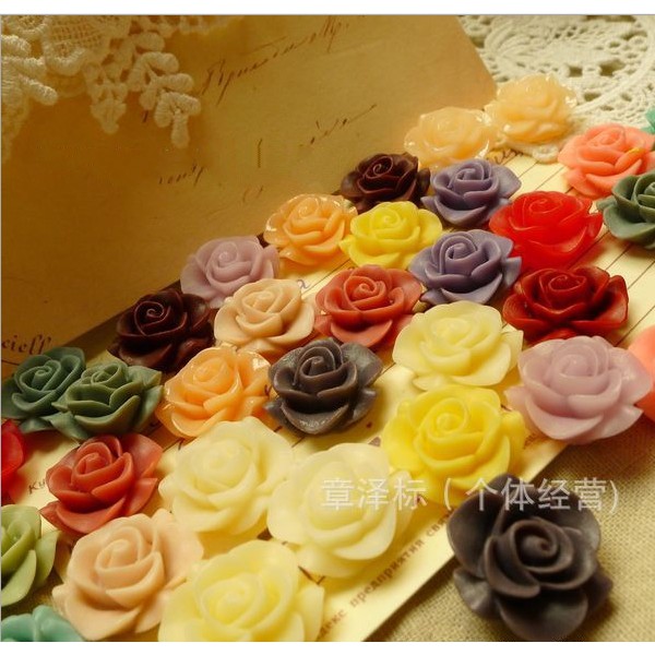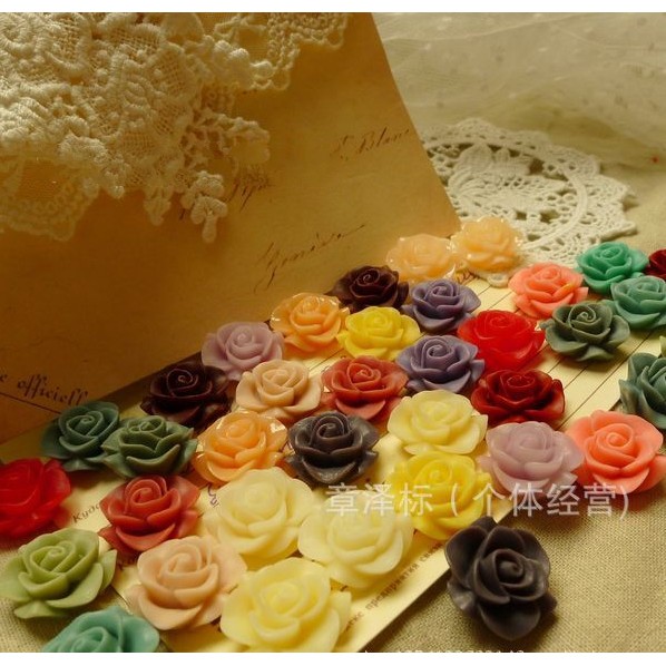 Charm hoa hồng các màu size 18mm trang trí kẹp tóc, vỏ ốp điện thoại, DIY