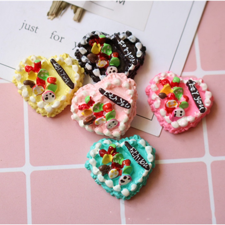 Charm mô hình bánh kem sinh nhật, lễ kỉ niệm hình trái tim cho các bạn trang trí nhà búp bê, vỏ ốp điện thoại, DIY
