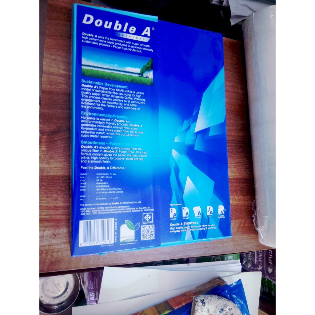 Giấy Double A A3 70gsm: Loại giấy in cao cấp, trắng, đẹp, thích hợp với tất cả các loại Máy in phun, Máy in Laser, Máy Fax laser, Máy Photocopy. In đảo 2 mặt không lo kẹt giấy. Thích hợp cho các nhân viên văn phòng.