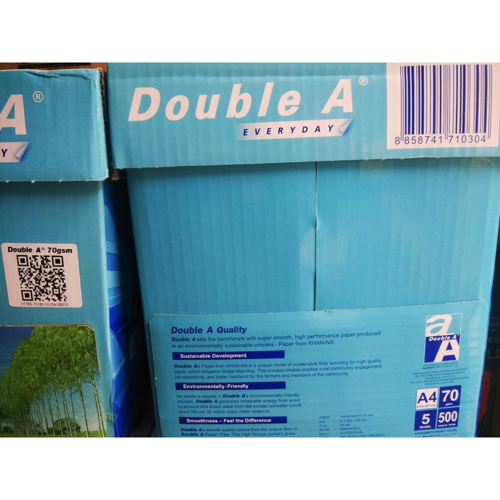 Giấy Double A A4 70gsm: Loại giấy in cao cấp, trắng, đẹp, thích hợp với tất cả các loại Máy in phun, Máy in Laser, Máy Fax laser, Máy Photocopy. In đảo 2 mặt không lo kẹt giấy. Thích hợp cho các nhân viên văn phòng.