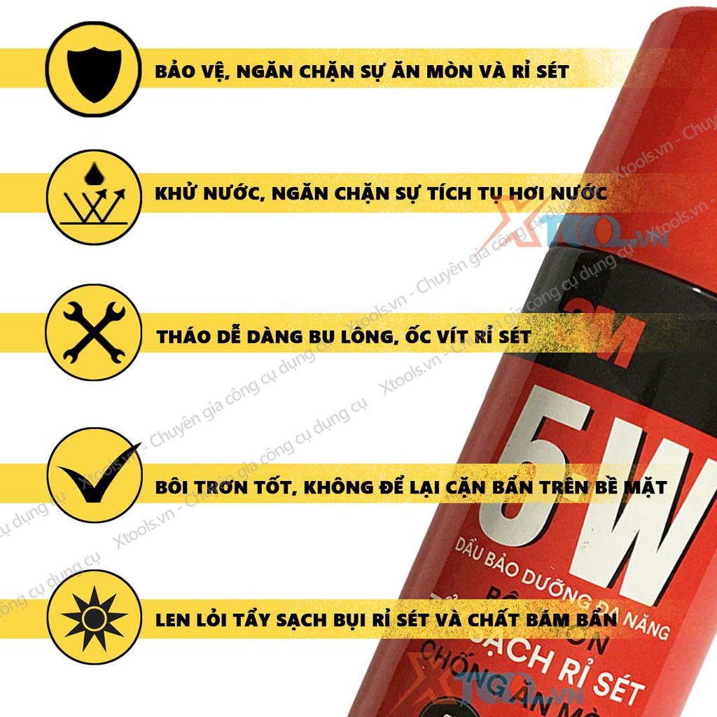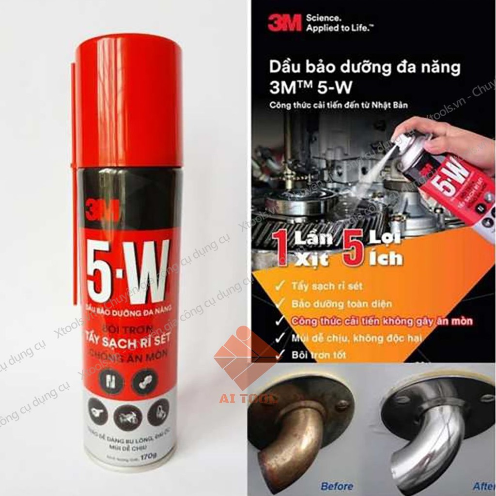 Chất chống rỉ sét và bôi trơn 3M 5-W 310g dung dịch tẩy đa năng mọi vết rỉ sét cặn bẩn bôi trơn bu lông ốc vít