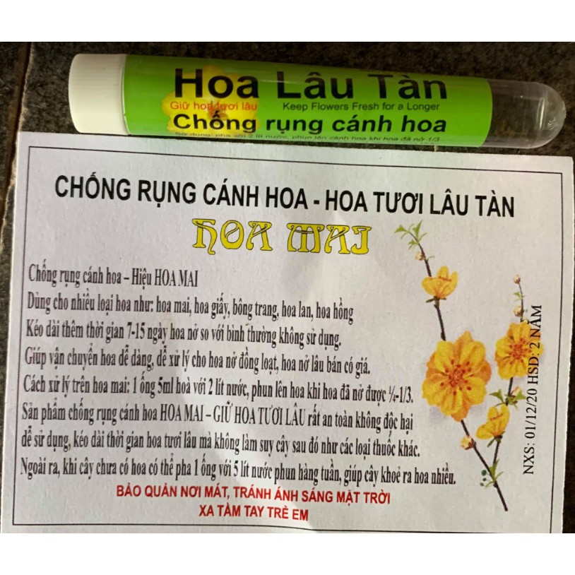 sản phẩm chống rụng cánh hoa Hoa Mai - Giữ hoa tươi lâu rất an toàn không độc hại, dễ sử dụng, kéo dài thời gian hoa tươi mà không làm suy cây sau đó như các loại thuốc khác