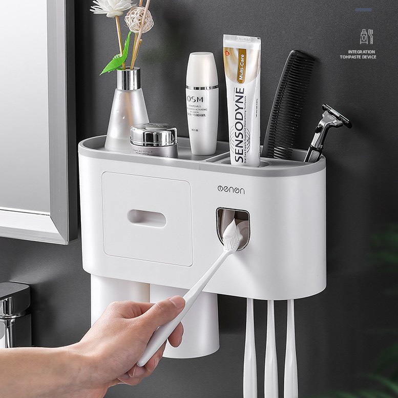 [CHẤT-ĐẸP-TIỆN] Bộ Nhả Kem Đánh Răng Tự Động, Kệ Nhà Tắm Cao Cấp Tiện Lợi Tặng Kèm Miếng Dán