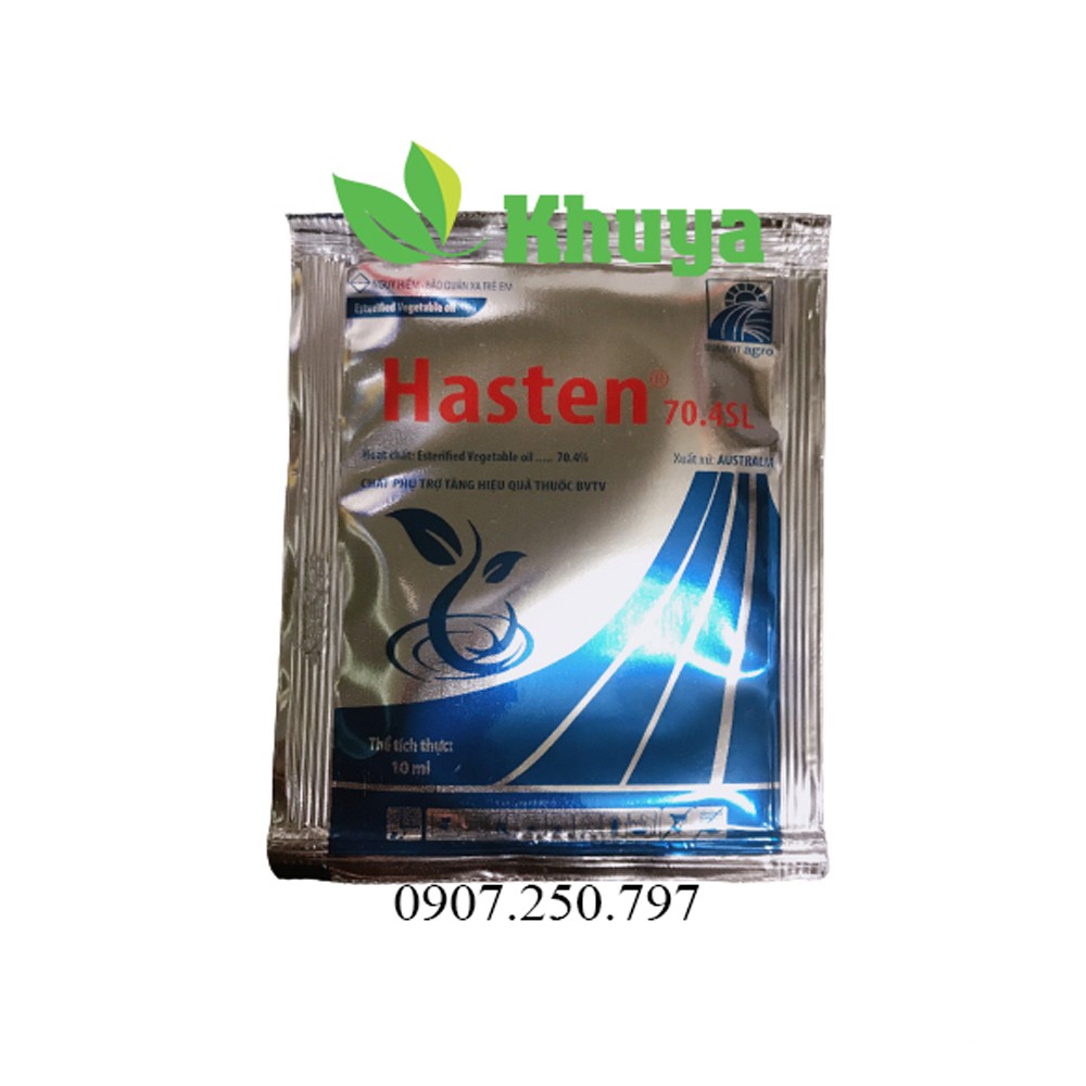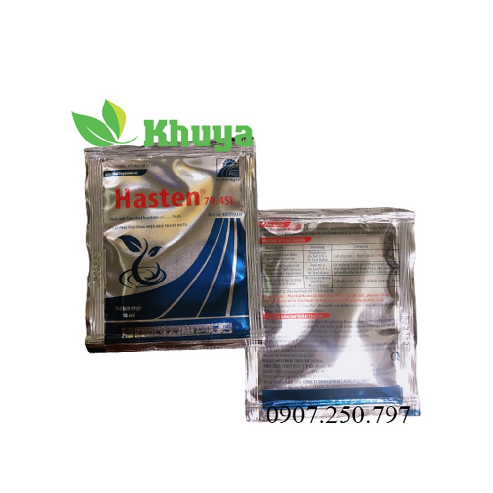 Chất hỗ trợ Hasten gói 10ml Tăng Hiệu Quả BVTVHoạt chất: Esterified Vegetable oil 70.4%