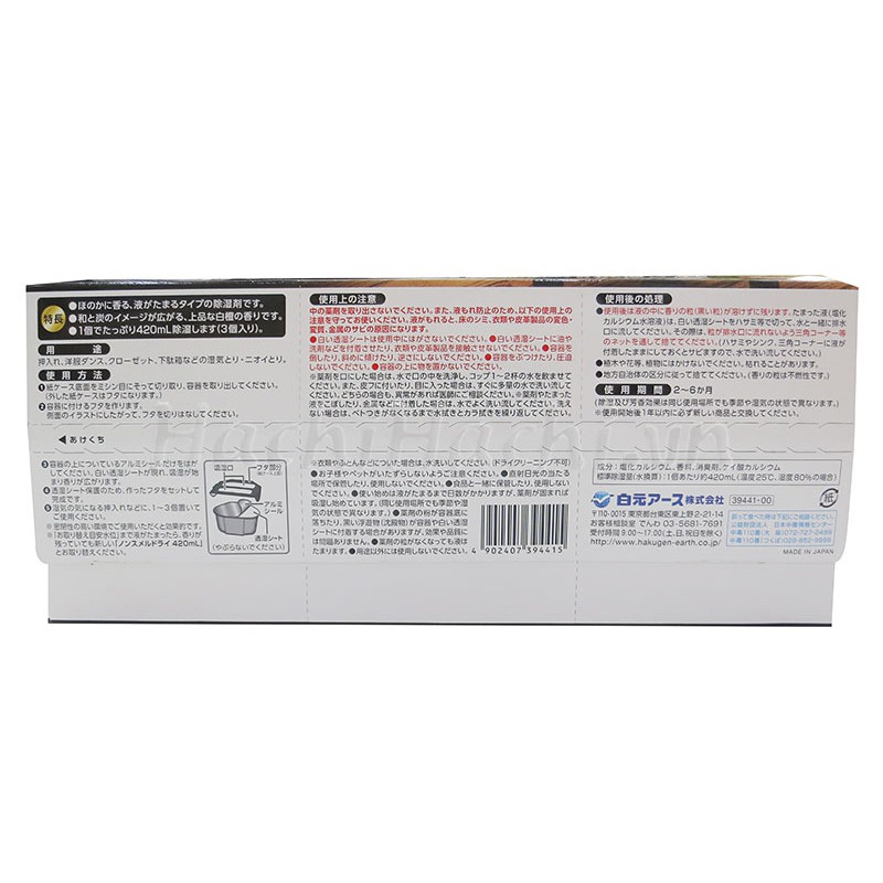 Nhà cửa & Đời sống > Chất khử mùi, làm thơm nhà > Khác || CHẤT HÚT ẨM KHỬ MÙI NGĂN TỦ EARTH 420ML X 3 HỘP HƯƠNG GỖ THAN BẠCH ĐÀN - Hachi Hachi Japan ShopCòn hàng