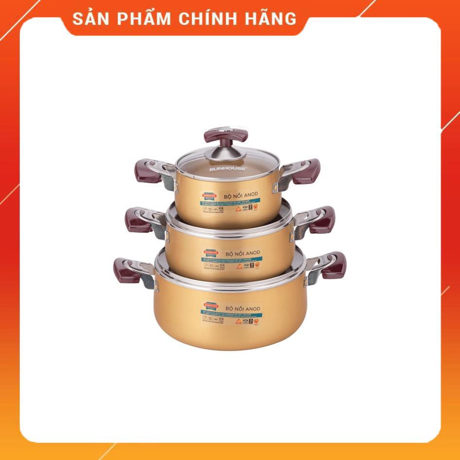Nhà cửa & Đời sống > Dụng cụ nhà bếp > Nồi || [Chất Liệu Nhôm Cao Cấp] Bộ Nồi anod Sunhouse 3 đáy SH6634 - Vung Kính Cường Lực Siêu Bền, Giữ Nhiệt Tốt,Tỏa Nhiệt ĐềuCòn hàng
