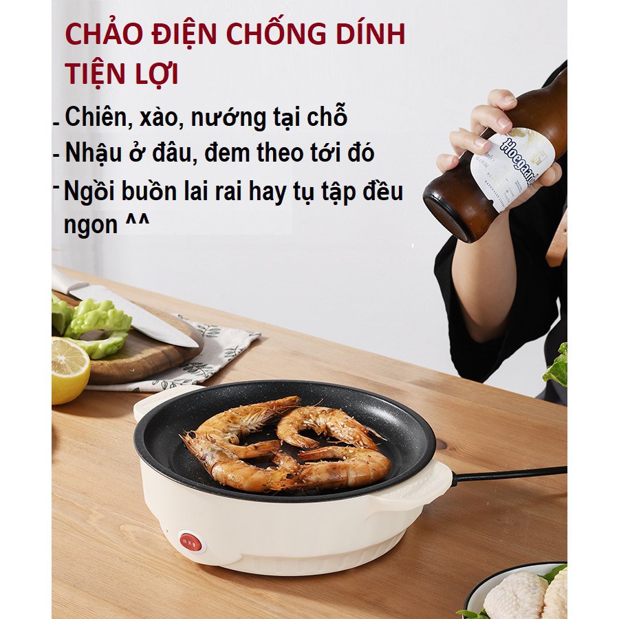 Nồi lẩu điện đa năng 220V - Nồi lẩu mini gia đình đa năng chiên, xào, rán siêu tiện dụng
