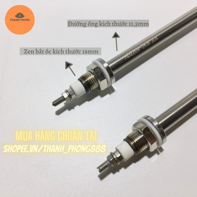 Thanh nhiệt dùng ông phi ~11,5 ( 11,5mm). Chân ốc phi 16 ( 16mm)
