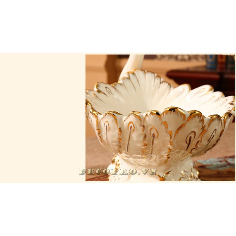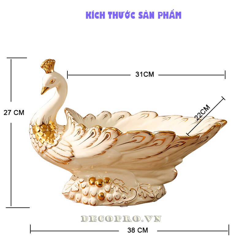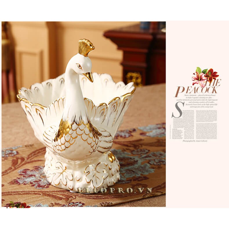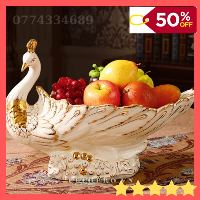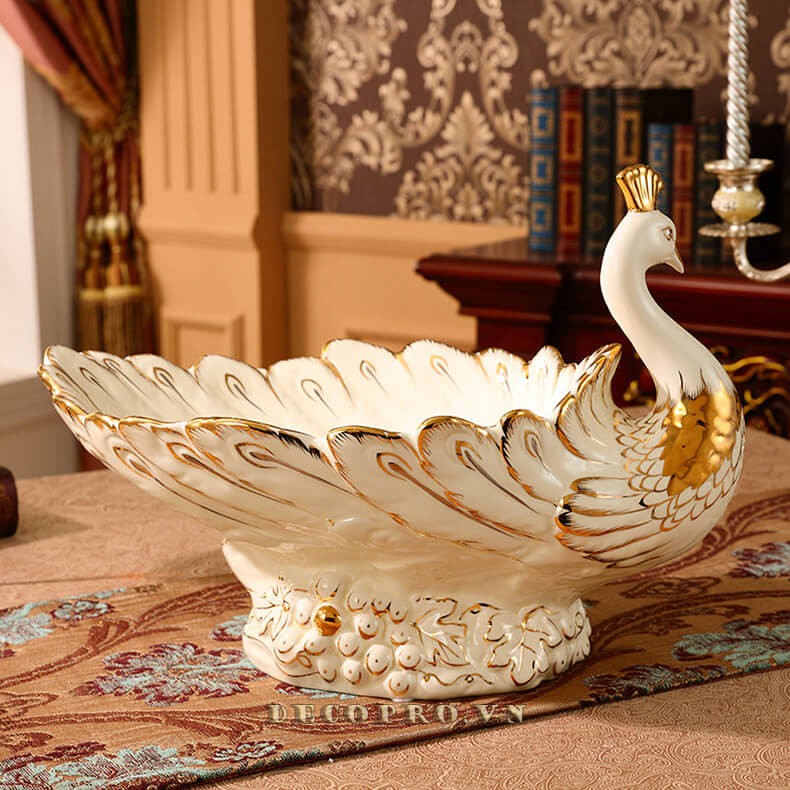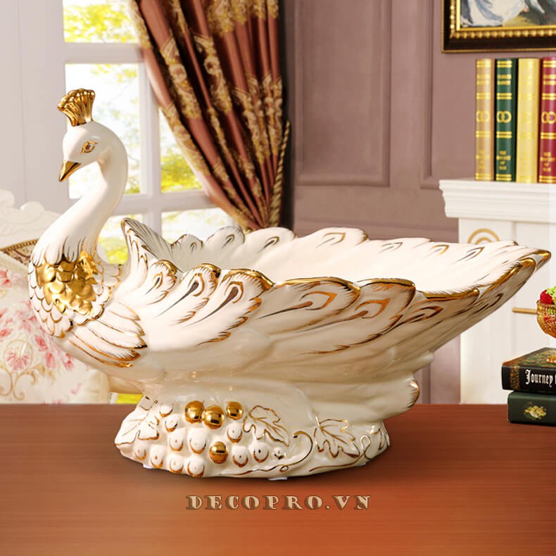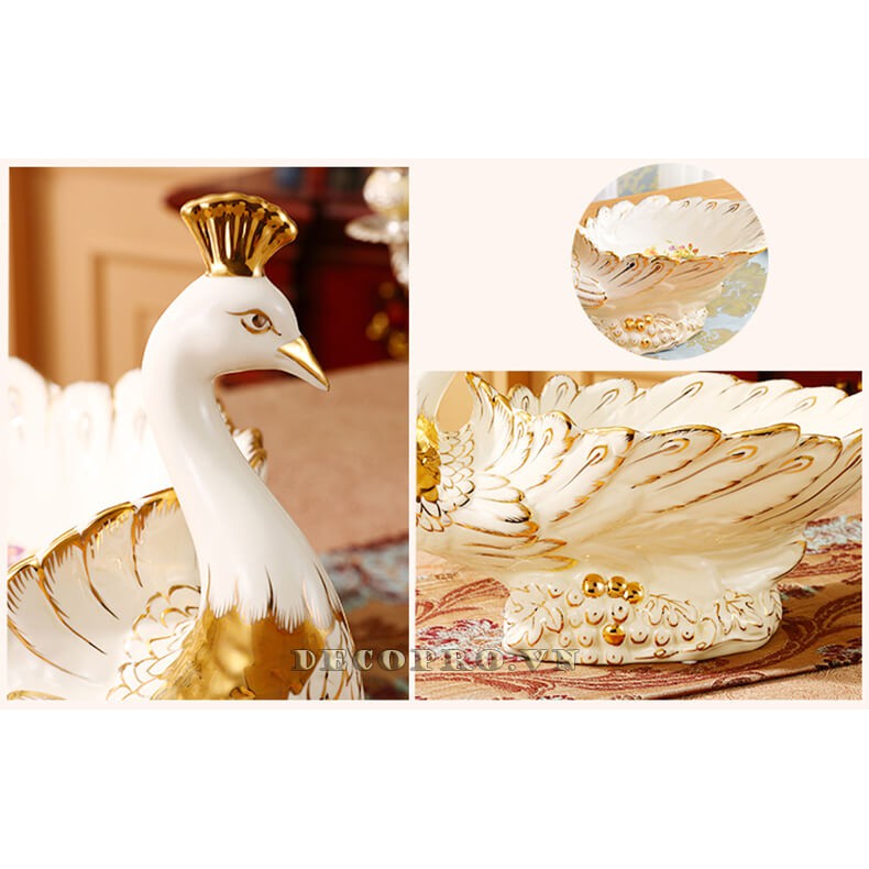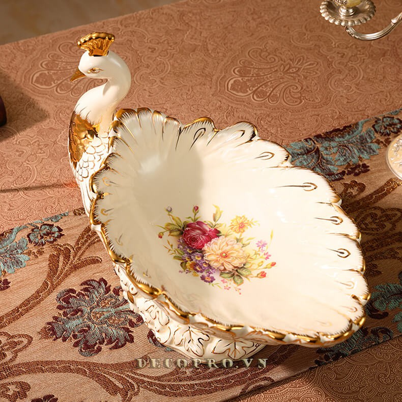 Sản phẩm khay hoa quả Chim công gốm sứ là một món đồ 2 trong 1 với công dụng làm món đồ trang trí phòng khách đẹp mắt, ấn tượng và vật dụng đựng trái cây rất sang.