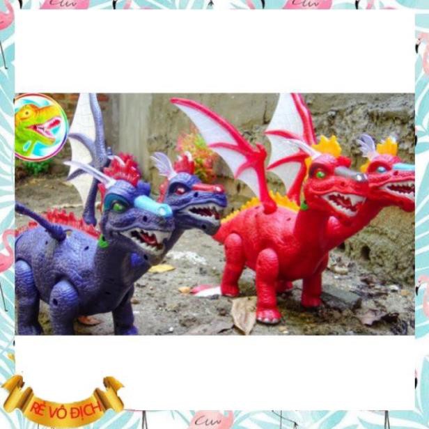 Đồ chơi khủng long rồng có cánh 2 đầu Dinosaur là loại đồ chơi dùng pin có thể vừa di chuyển vừa đập đập cánh và đẻ trứng, phát ra tiếng gầm gru dễ sợ, vảy và sừng của khủng long phát ra ánh sáng với nhiều màu sắc khác nhau rất đẹp