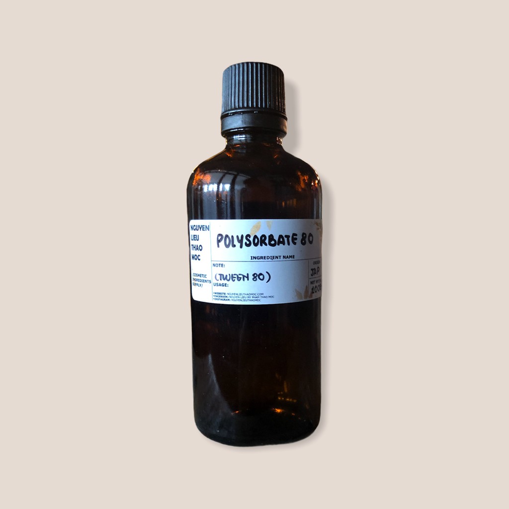 Polysorbate 80 (hay còn gọi là Tween ™ 80) được tổng hợp từ sorbitol tự nhiên và acid oleic thực vật.Là một chất chuyển thể sữa (emulsifier – nhũ hóa) và khử bọt dùng trong thực phẩm, vitamin, thuốc và vắc-xin, tuy nhiên, polysorbate 80 cũng có thể được dùng như một chất hoạt động bề mặt (surfactant), chất hòa tan (solubilizer) trong xà phòng và mỹ phẩm giúp kết hợp và hòa tan các thành phần lại với nhau dễ dàng hơn.