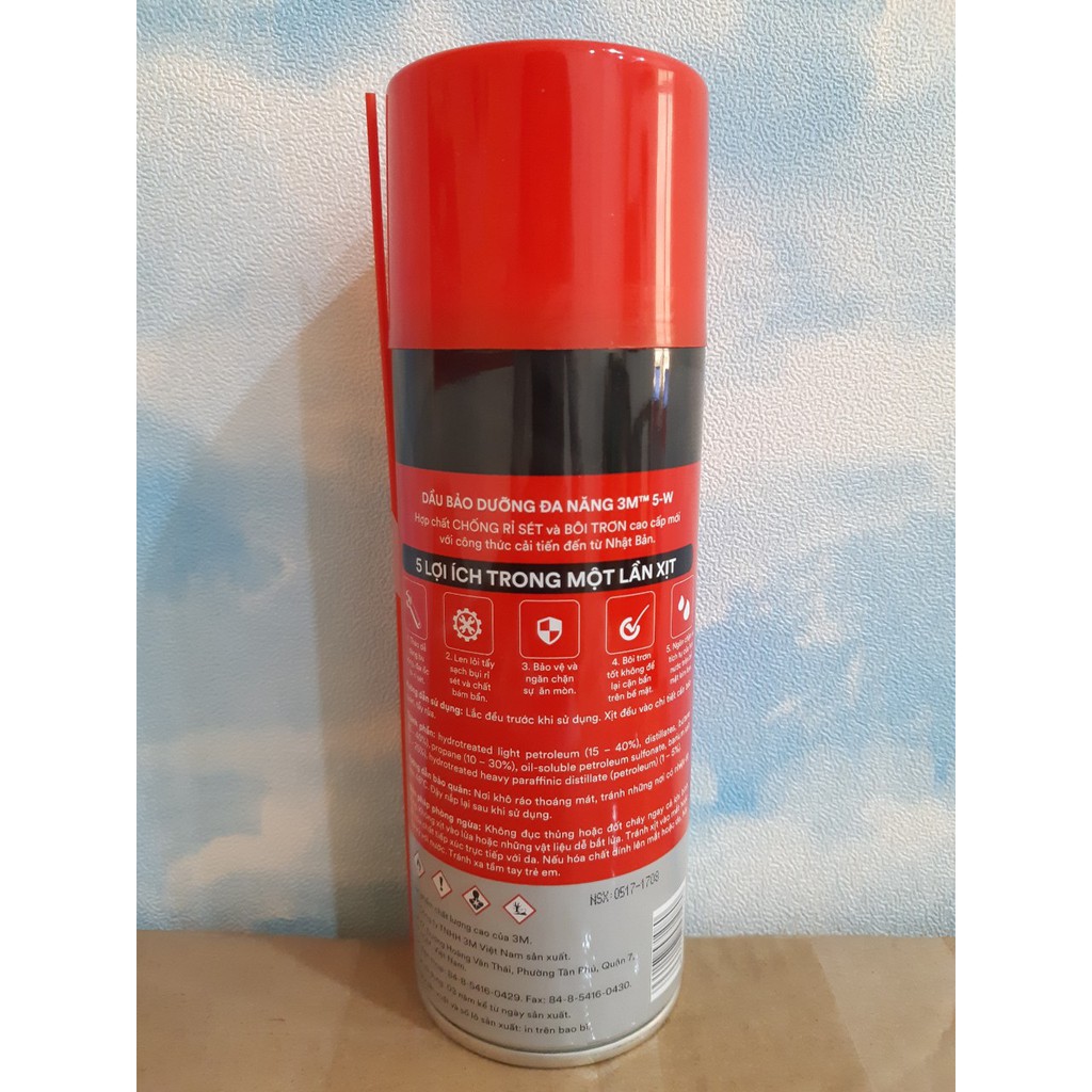 Sản phẩm được sản xuất tại Công ty TNHH 3M Việt Nam 3M 5-W thay thế 3M 5 WAY có khả năng chống rỉ sét và bôi trơn.