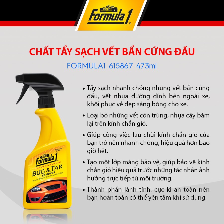 Chất tẩy sạch vết bẩn cứng đầu và nhựa đường – Formula1 Bug&TagXuất xứ: Formula1 (Mỹ)