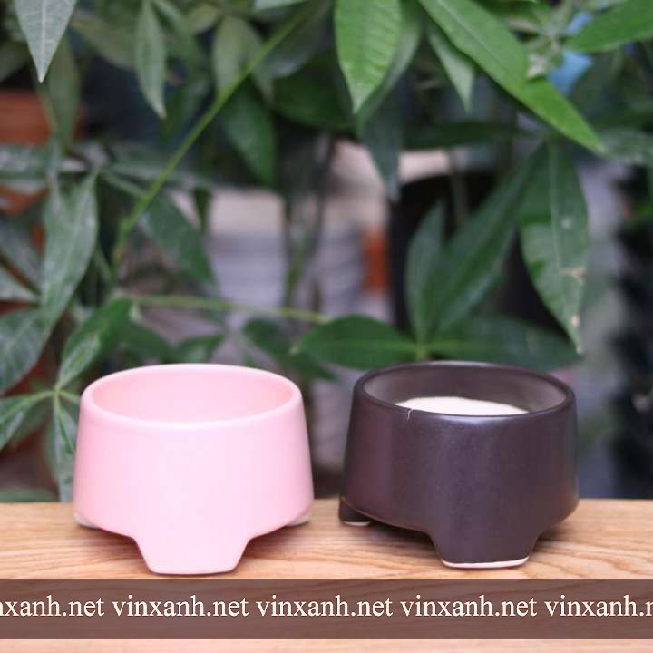 Chậu sứ trồng cây sen đá, xương rồng, mini, cắm hoa khô để bàn 3 chân thấp