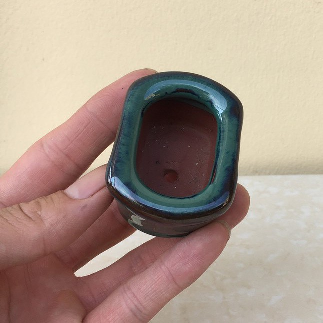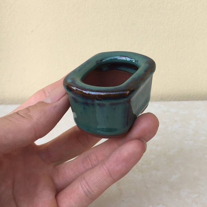 Chậu bonsai Chữ nhật siêu mini men hỏa biến gốm Bát tràng 1 size BM-49