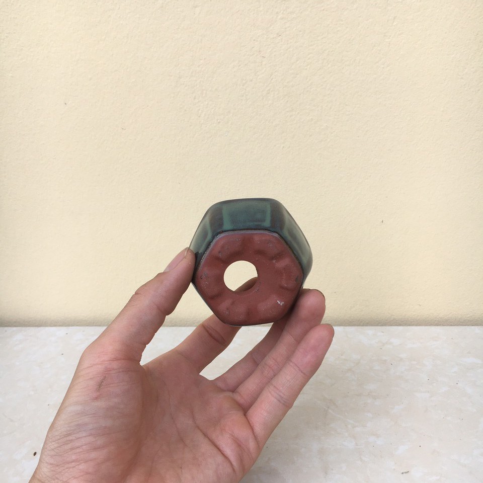 Chậu bonsai lục giác mini men hỏa biến gốm Bát tràng 1 size BM-14