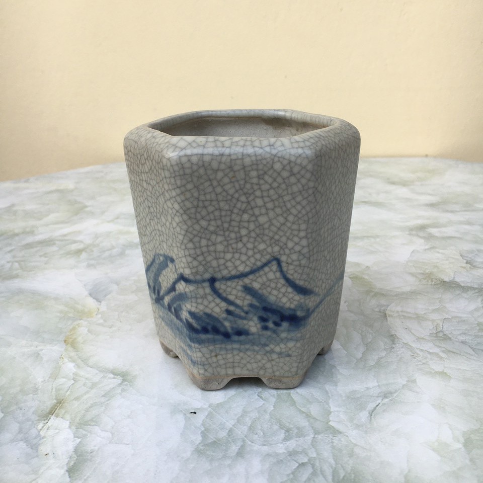 Chậu bonsai Lục giác mini men Rạn gốm Bát tràng 1 size BM-94