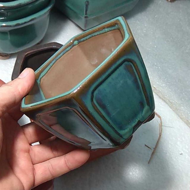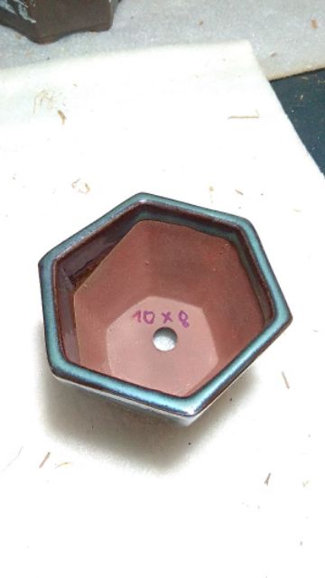 Chậu bonsai mini lục giác, chậu men xanh cao cấp